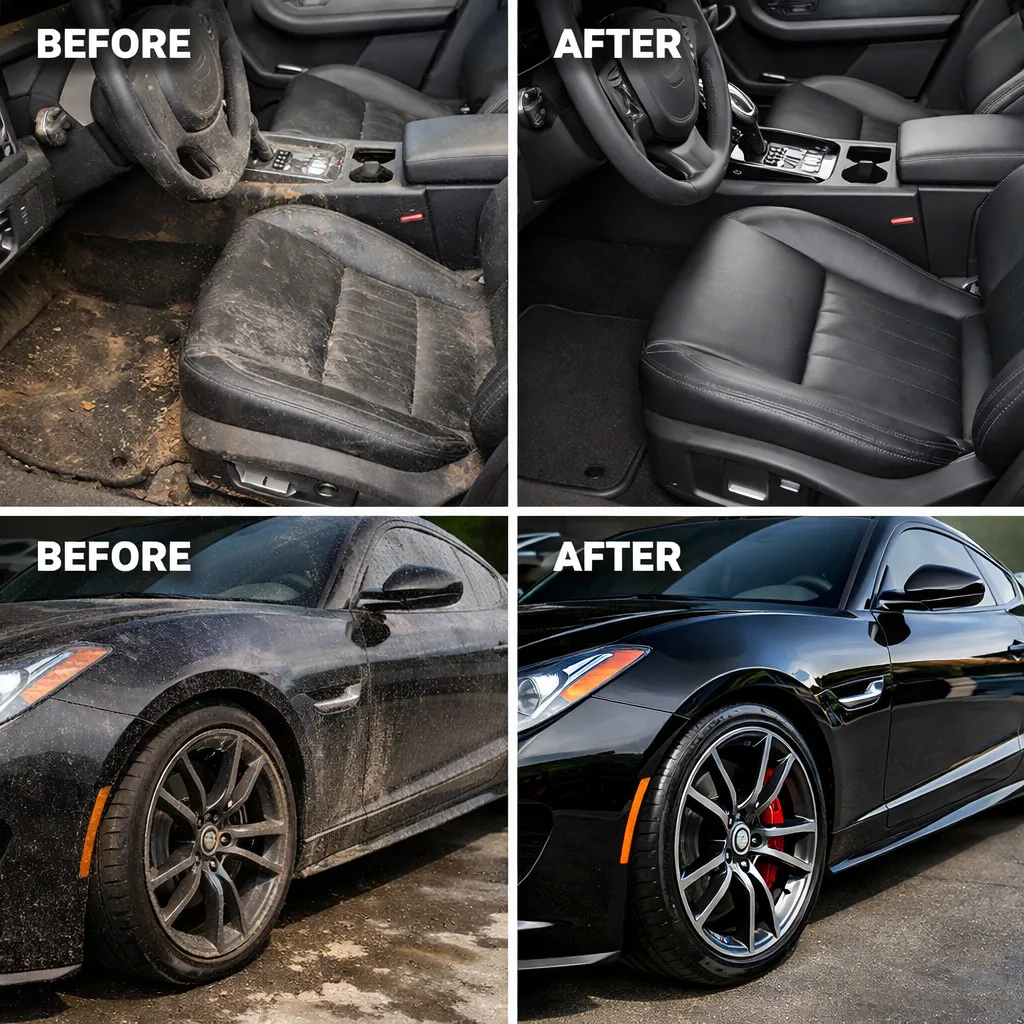 Deep interior + exterior clean with premium finish